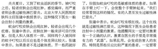 蚊虫叮咬 防过敏性淋巴管炎
