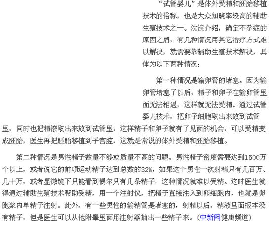 试管婴儿可解决输卵管堵塞等不孕不育问题