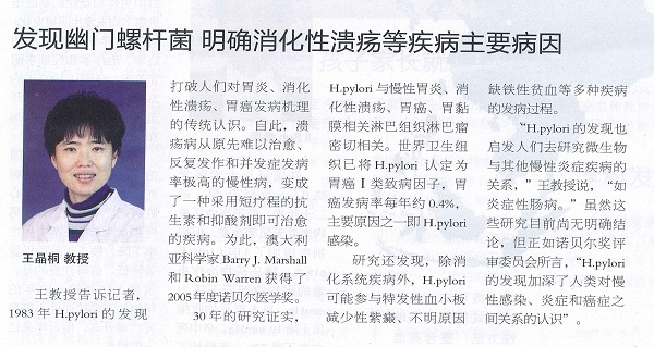 发现幽门螺杆菌,明确消化性溃疡等疾病主要病因