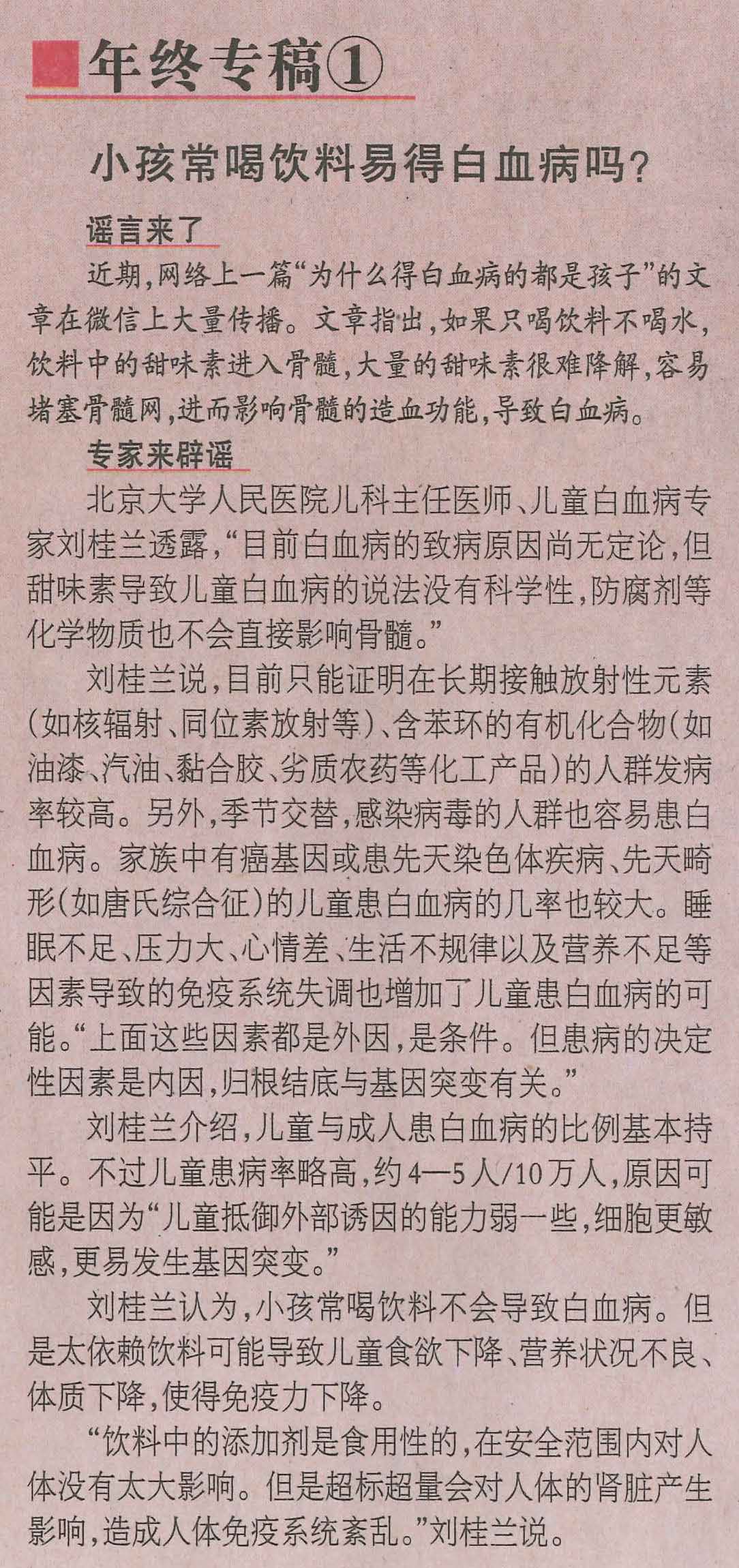 那些年我们辟过的谣 (小孩常喝饮料易得白血病吗?)