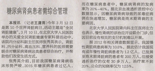 糖尿病肾病患者需综合管理