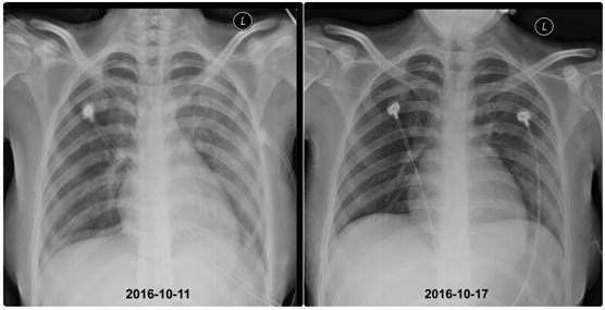 第4天,复查胸片,双肺部渗出影明显吸收;