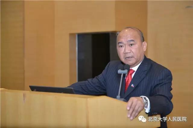 菲律宾卫生部副部长Herminigildo Valle先生做主旨发言,着重介绍了《菲律宾最新医疗卫生政策》。 Valle副部长表示,菲律宾从地理位置和人种血缘上都与中国非常亲近,他愿意传递友谊的信号,希望在场的每位专家和未来的医生们都能加入两国的医疗科技创新和医疗服务提升等各方面的合作中。