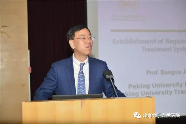 北京大学人民医院院长姜保国教授做主旨发言,介绍了《中国严重创伤区域性救治体系建设与推广》。10年前,以姜保国教授为首的专家团队,依托北京大学交通医学中心(现北京大学创伤医学中心),就开始了中国创伤状况的调研,研发了具有自主知识产权的院前与院内、院内急诊科与救治专科的创伤信息预警联动系统;利用中国综合医院各专科的发展优势,结合中国国情提出在综合医院组建多学科创伤救治团队;制定严重创伤、创伤并发症等救治规范及专家共识,系统形成了适合中国国情的严重创伤救治规范,建立了创伤救治“中国模式”。这一成果获得2016年度国家科技进步二等奖。