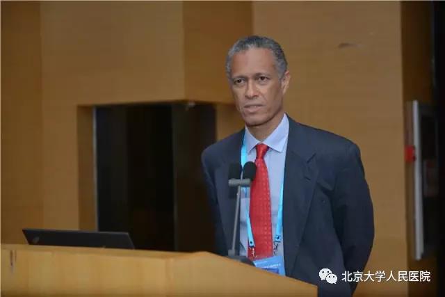 北京大学人民医院院长姜保国致欢迎辞。姜院长向远道而来的各国朋友们表示了衷心的欢迎,对澳门科技大学健康科学学院霍文逊院长和Billy Chan博士多年来对中葡医学交流合作所做出的巨大贡献表示感谢。姜院长指出,中国的“一带一路”提议获得了全球各国的广泛关注,同时也点亮了中国和葡语国家之间的合作。此次医学交流会,正是对“一带一路”所提倡主张的“和平合作、互利共赢、互学互鉴、开放包容”理念的高度呼应。希望各国专家在这短暂而宝贵的半天时间里,与广大人民医院医学界同仁酣畅交流,共述友谊。