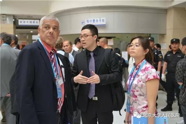 随后外宾实地参观了北京大学人民医院门诊大厅,了解了医院的日常运行、门诊量、患者服务等方面的具体内容。