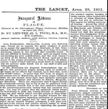 一个世纪前北京大学人民医院首任院长伍连德博士在《柳叶刀》上发表论文,成为中国在国际知名学术期刊发表学术成果的第一人。