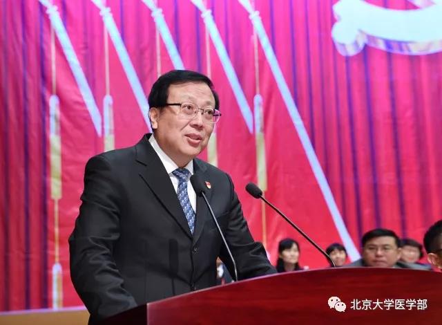郝平同志代表北京大学党委向大会表示祝贺,向在教学、科研、医疗、管理服务等各条战线上,为北大医学事业发展做出贡献的党员同志、师生员工和医务工作者表示崇高的敬意!