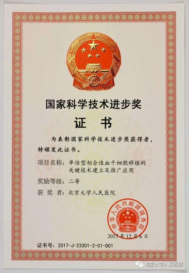 此次获奖是继2014年“异基因造血干细胞移植后复发及移植物抗宿主病防治体系建立与应用”项目获得国家科技进步二等奖之后,黄晓军团队再次获得该项奖励。