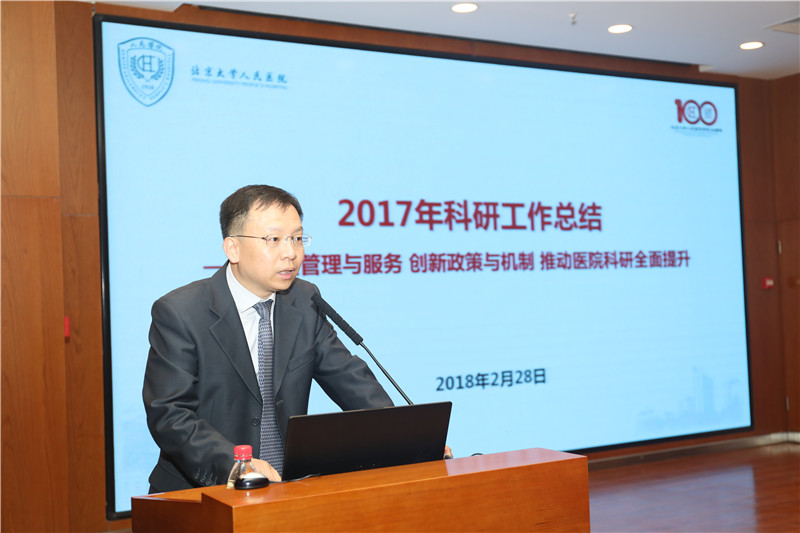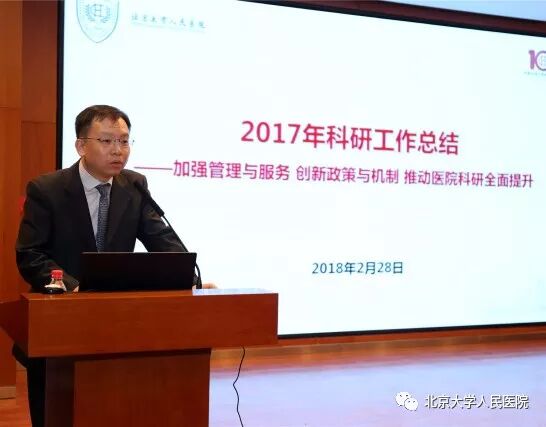 北京大学人民医院院长助理王天兵做2017年度北京大学人民医院科研工作总结报告。