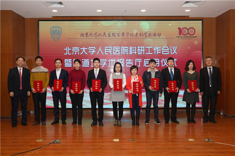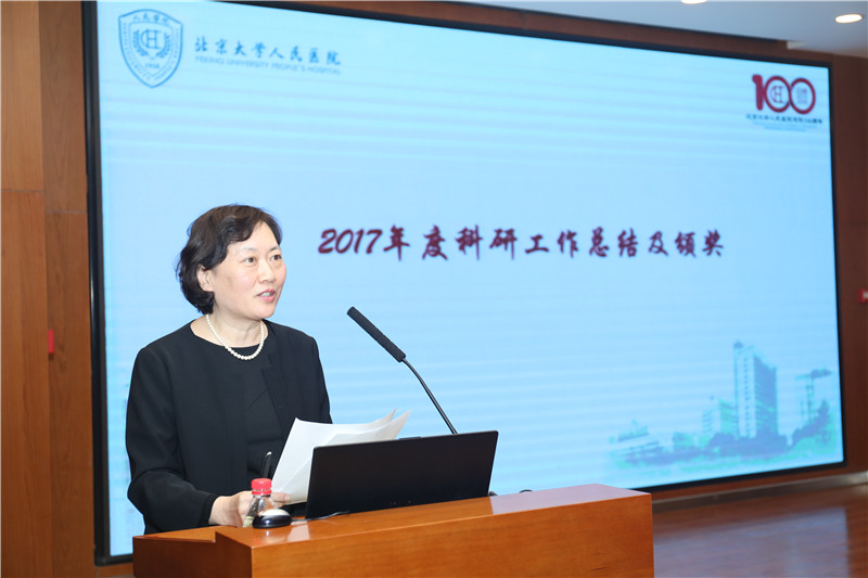 医院党委副书记陈红松、郭静竹为2017年度北京大学人民医院优秀科研团队奖、医院学术新星获得者颁奖