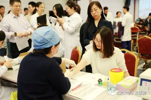 早上7:30,北京大学人民医院科教楼陆道培学术报告厅已站满了等待登记、验血、献血的职工。