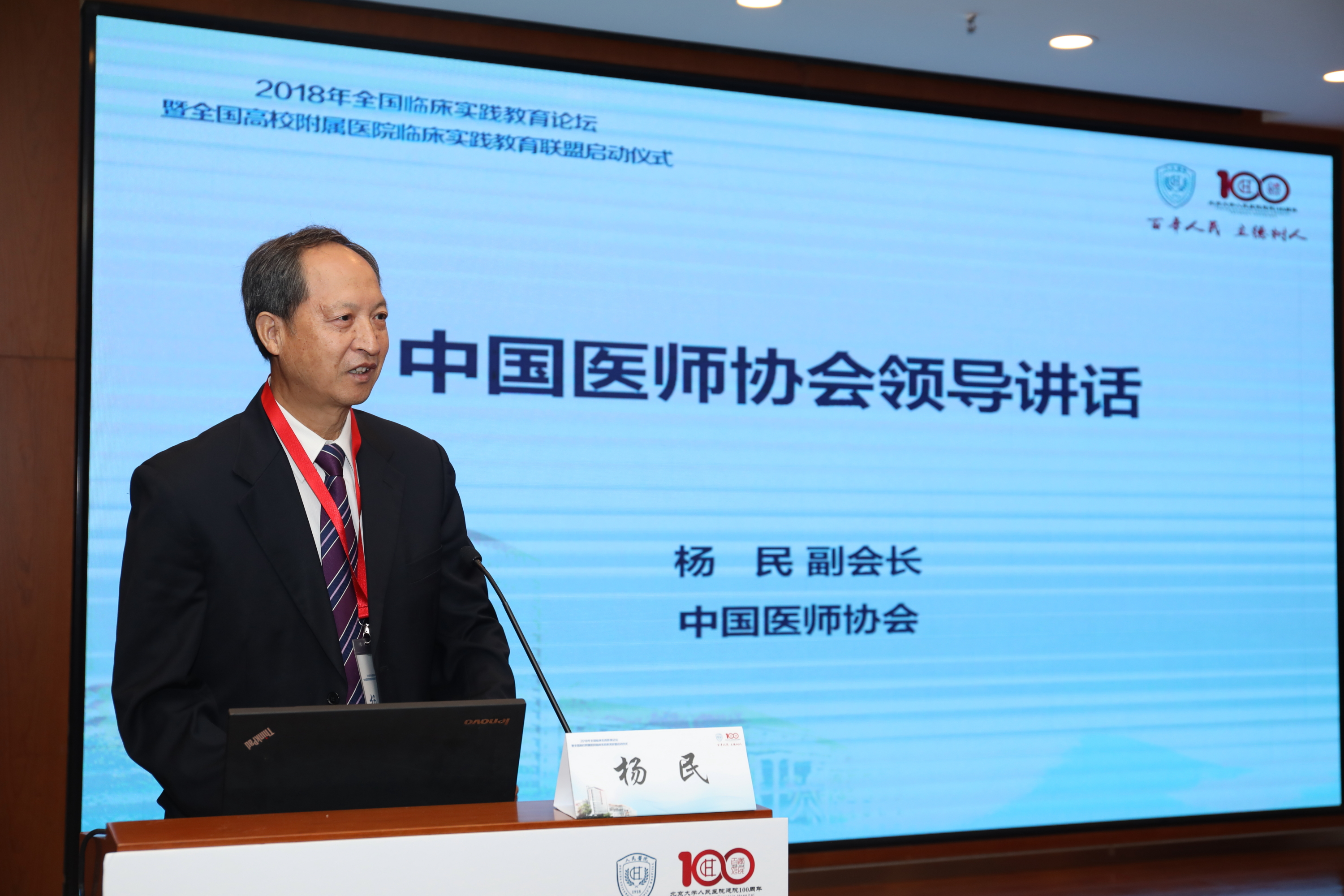 中国医师协会杨民副会长对教育家、医学家伍连德教授消灭肺鼠疫、创建中华医学会、创建中央医院、创建哈尔滨医科大学的辉煌一生做了介绍,并对北京大学人民医院在教学管理制度设计、师资团队建设、教学平台搭建、教育改革与创新等方面所作出的努力给予肯定。
