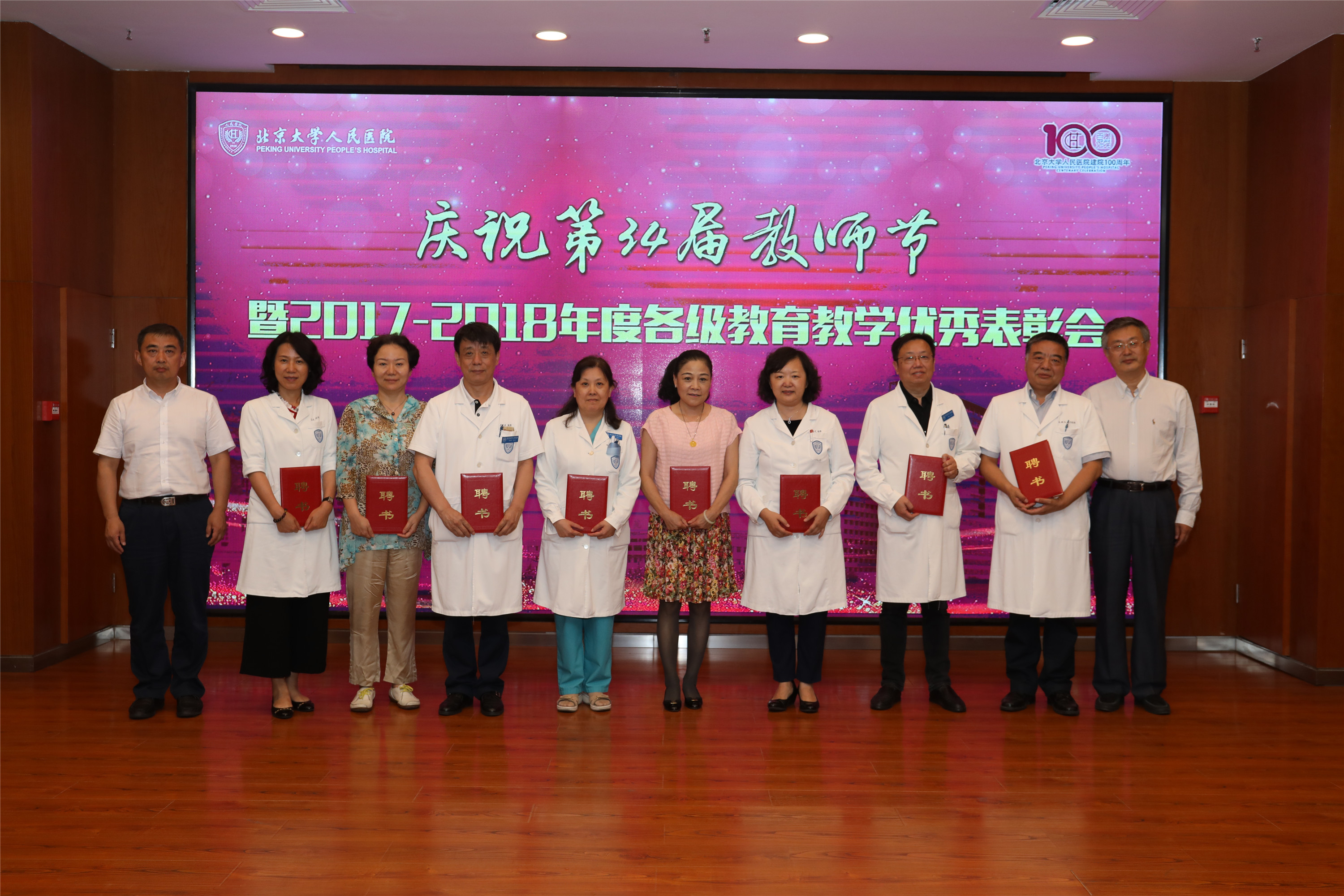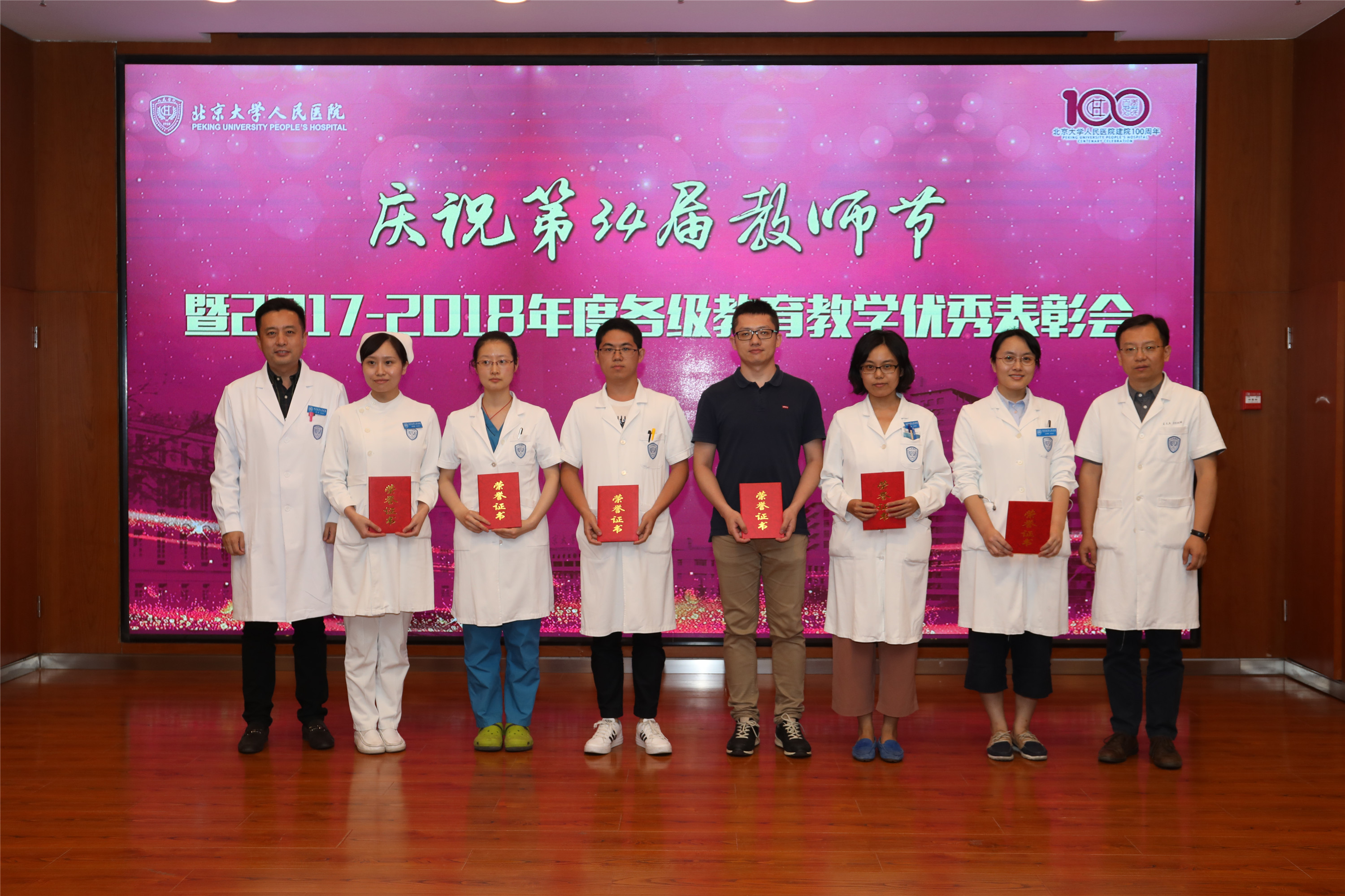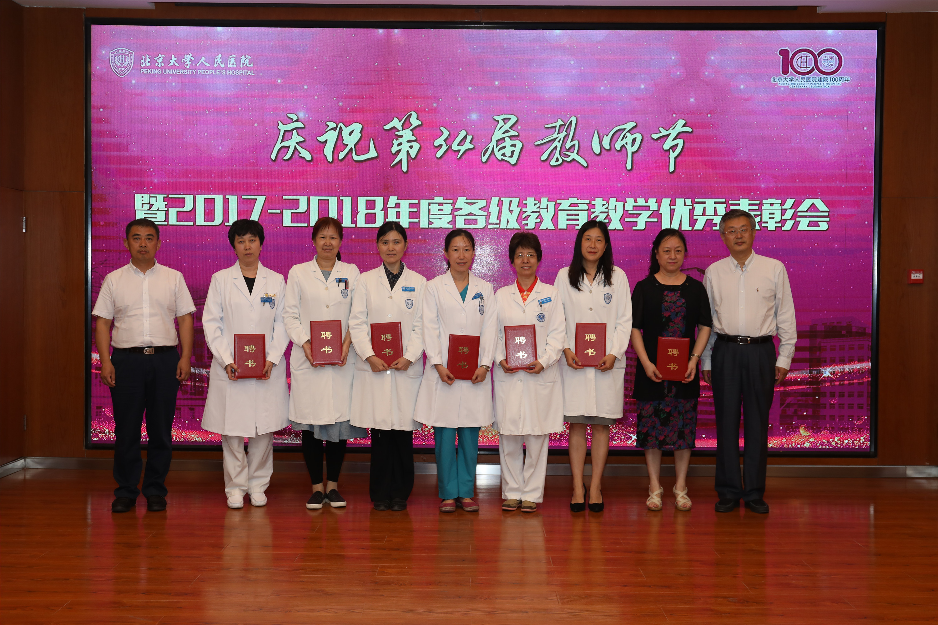 医院全体临床科室、医技科室、行政部门负责人,以及2017-2018年度北京市级、北京大学、北京大学医学部、人民医院各级各类教学奖项的优秀教师个人和集体代表莅临大会。表彰会由北京大学人民医院王建六副院长主持。