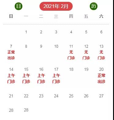 2月14日-17日上午开诊,下午无门诊