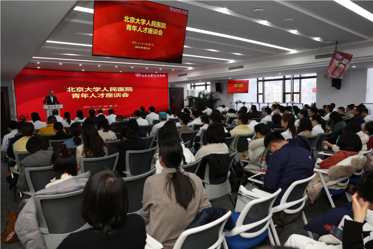 2024年是北京大学人民医院人才战略年,1月31日,医院组织临床、医技科室的医师、科研等岗位的青年人才召开座谈会,拉开了人才战略年的序幕。会上做教学、科研、医疗、人事等方面人才培养政策解读,并邀请中青年人才代表分享经验。此次座谈会特邀中国工程院院士、医院院长王俊分享自身经历与体悟,为青年人才提供了更清晰的发展方向。王天兵副院长、赵翔宇副院长、邵晓凤党委副书记、行政处室负责人及青年人才代表共200余人参加座谈会。座谈会由医院党委书记、副院长王建六主持。