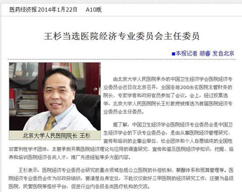 医药经济报:王杉当选医院经济专业委员会主任委员