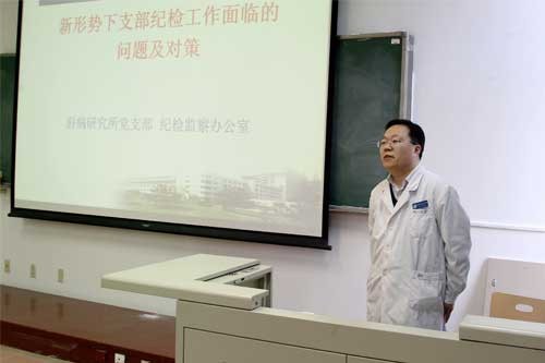 随后,肝病研究所党支部纪检委员封波为大家做了题为《新形势下支部纪检工作面临的问题及对策》的专题汇报。肝病研究所党支部以北京大学医学部党建研究课题为契机,以我院部分党支部作为研究对象,通过问卷调查、座谈等形式了解基层党支部纪检工作的现状,与纪委、监察办公室合作共同探讨加强和完善基层党支部纪检工作的方法和长效机制,并取得了初步成效。
