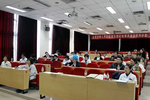 2012年3月14日下午,医院纪委、监察办公室在党委的支持和党院办公室的协调下,在科研楼伍连德讲堂举办了北京大学人民医院第二期党支部纪检委员培训系列讲座。各党支部纪检委员40余人参加了此次培训。会议由监察办公室副主任闫凤玲主持。