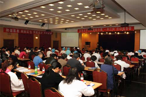 为贯彻落实《北京市卫生局印发关于开展“一和三同”活动实施意见的通知》(京卫监察字【2012】14号)文件精神,在医院党政领导的大力支持和各部门的密切配合下,2012年10月29日下午,我院组织开展了“一和三同”活动报告会,特别邀请了北京市卫生局党委委员、纪委书记何群为大家做了题为《和谐医患 仁心担当》的专题讲座。临床医技科室正副主任、行政职能处室科级以上干部、支部书记、支部委员、科护士长、护士长、团委书记、团委委员、团支部书记、民主党派代表等近150人聆听了讲座。此次讲座由纪委书记朱继业主持。
