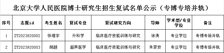 北京大学人民医院专博专培并轨博士研究生招生复试名单公示