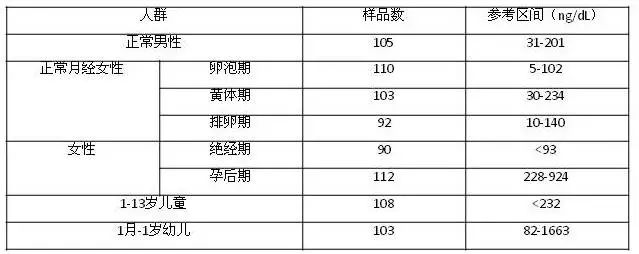 检测不同健康人群,采用百分位数法,以5%和95%为界限,17α-OHP参考区间: