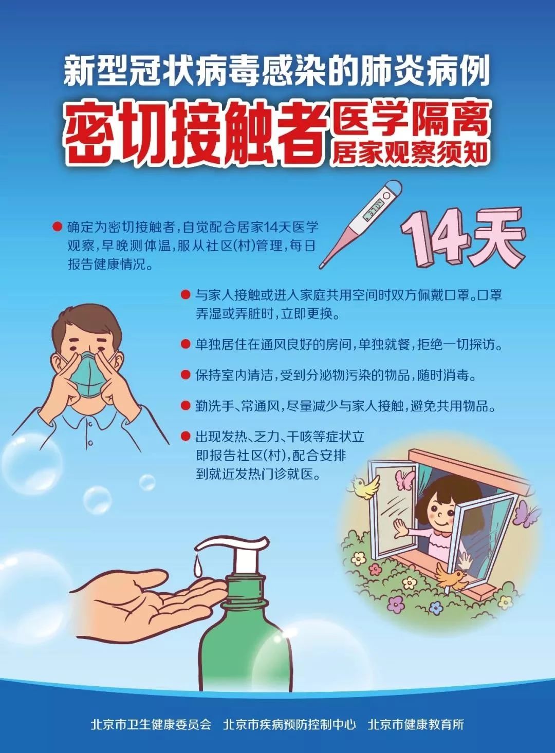1、确定为密切接触者,自觉配合居家14天医学观察,早晚测体温,服从社区(村)管理,每日报告健康情况。