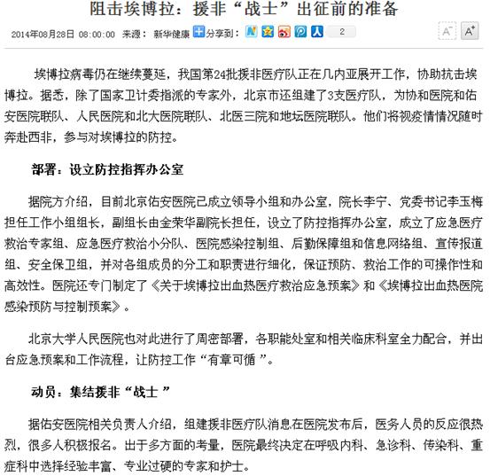 新华网:阻击埃博拉:援非“战士”出征前的准备