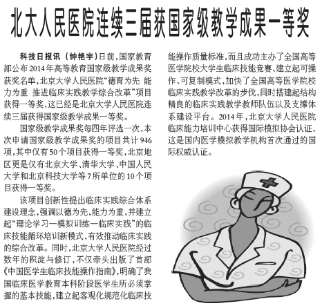 科技日报:北大人民医院连续三届获国家级教学成果一等奖