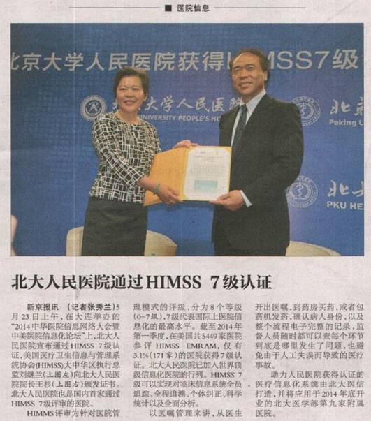 新京报:我院通过HIMSS 7级认证