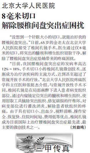 光明日报:8毫米切口解除腰椎间盘突出症困扰