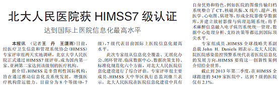 健康报:北大人民医院获HIMSS7级认证