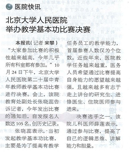 医师报:北京大学人民医院举办教学基本功比赛决赛