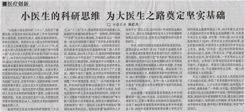 科技日报:小医生的科研思维 为大医生之路奠定坚实基础