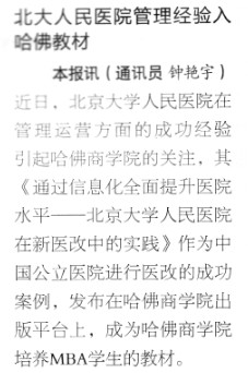 中华医学信息导报:我院管理经验入哈佛教材
