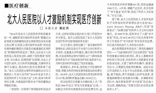 科技日报:北大人民医院以人才激励机制实现医疗创新