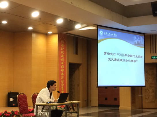 2016年4月18日,北京大学人民医院召开贯彻执行“2016年全国卫生系统党风廉政建设会议精神”专题学习会。进一步学习贯彻2016年卫生计生系统党风廉政建设及反腐败工作要求,分析医院党风廉政建设工作形势,并就做好2016年党风廉政建设工作提出要求。