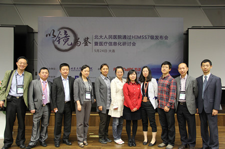 2014年5月24日,在大连举办的中华医院信息网络大会暨中美医院信息化论坛(CHINC)的大会上,北京大学人民医院通过HIMSS7级发布会暨医疗信息化研讨会隆重举行。北京大学人民医院于5月23日正式获颁了HIMSS7级证书,成为亚洲第二家、国内第一家通过HIMSS7级评审的医院。此次卫星会旨在分享北京大学人民医院近年来信息化建设取得的经验,吸引了众多前来“取经”的听众,现场座无虚席,很多没地方坐的听众都是站着听完了全程。