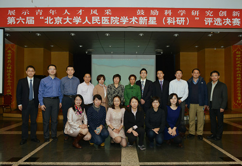 2014年11月4日下午,第六届北京大学人民医院学术新星(科研)评选决赛在北京大学人民医院隆重举行。北京大学科研部的周辉部长,基础医学院的邱晓彦教授、周菁研究员,来自医科院阜外心血管病医院的唐熠达教授,来自北京朝阳医院的蔡军教授,北京大学人民医院医院党委书记陈红、副院长刘玉兰,各学科的主任、专家、往届医院学术新星获得者、资深护理研究者、媒体和学生代表参加了活动。
