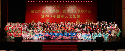 2014年1月23日下午,北京大学人民医院2013年度优秀员工先进集体表彰大会暨2014年新春文艺汇演圆满举行。《迎春鼓舞》铿锵有力的鼓声拉开了表彰大会暨文艺汇演的帷幕。全院近千名员工欢聚一堂,共贺新春。