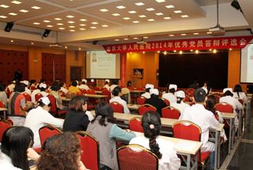 2014年4月11日中午11点,北京大学人民医院2014年优秀党员答辩评选会在科教楼多功能厅举行。由各党支部推选出的32名优秀共产党员参加此次评选。医院党委副书记陈红松、党委院长办公室主任邵晓凤等领导出席,党委委员、民主党派代表、各党支部的党员代表和群众代表100余人担任评委。