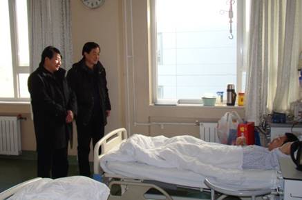 2013年1月8日上午,北京大学人民医院总务处党支部彭洪书记、党支部组织委员侯志骅和职工代表白结来到脊柱外科病房,探望生病住院的总务处老任(化名)同志,为他送去温暖与关怀。