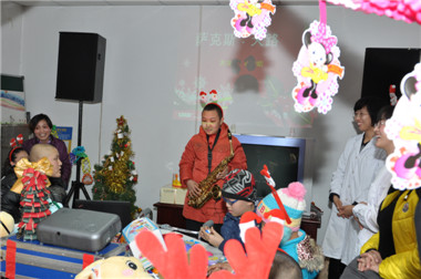 联欢活动内容丰富,收集病人心愿卡、畅想未来的自己、“圣诞老人”赠送圣诞礼物以及小朋友自创的节目精彩上演。活动开始前1个多小时,近20名骨肿瘤科患儿及其家属就已在会议室聚集一堂,用画笔描绘未来的自己。活动中,郭卫主任为每一位小朋友送上了圣诞礼物。去年参加圣诞联欢目、目前已经结束治疗回家的小朋友也通过视频、录音的方式向现场的小朋友送来节日的祝福。随后的1个多小时,活动现场成了孩子们欢乐的海洋。小朋友们表演的独唱、诗朗诵、萨克斯独奏、笛子吹奏等节目,以及捏橡皮泥比赛,将现场气氛一次次推向高潮。欢声笑语让小朋友们忘记了窗外的寒冬,忘记了病痛的折磨,大家共同沉浸在节日的欢乐与幸福中。最后,在雪绒花合唱中,联欢活动圆满落下帷幕。