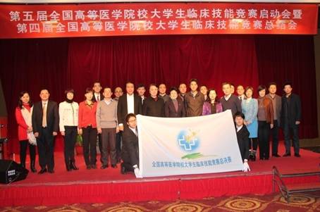 2013年12月27日,第五届全国高等医学院校大学生临床技能竞赛启动会暨第四届全国高等医学院校大学生临床技能竞赛总结会于北京大学人民医院隆重举行。此次活动由教育部医学教育临床教学研究中心、教育部临床实践教学指导分委员会主办。教育部高教司农林医药处王启明处长、高斌副处长,教育部医学教育临床教学研究中心(以下简称研究中心)主任、教育部临床实践教学指导分委员会主任、北京大学人民医院院长王杉,研究中心副主任兼秘书长、教育部临床实践教学指导分委员会秘书长、北京大学人民医院党委书记陈红,研究中心副主任、吉林大学迟宝荣教授,研究中心副秘书长、中南大学湘雅医学院副院长何庆南,研究中心副秘书长、宣武医院副院长贾建国,第四届全国高等医学院校大学生临床技能竞赛的承办院校以及第五届全国高等医学院校大学生临床技能竞赛的承办方代表参加了此次盛会。