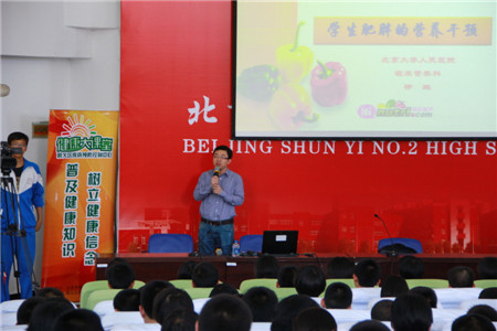 5月20日下午,北京大学人民医院临床营养科柳鹏博士为顺义二中的学生们做了一场题为《学生肥胖的营养干预》的健康讲座。此次讲座是由北京市疾病预防与控制中心(CDC)举办的继进步小学讲座之后的又一场意义重大的健康大课堂活动。