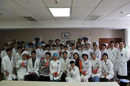 伴随着轻柔的乐曲,一段温馨的视频拉开了庆祝活动的序幕,大家眼前一亮,片中的每一幅照片都是心脏中心的护士,姑娘们一张张青春美丽的面庞洋溢着幸福、开心,一句句充满自信的个性签名充分展示着她们的魅力。在场的护士们这才明白原来仁晖医生前一段时间收集的照片是用来做视频的,顿时心中充满了感动。这时,一首由马玉良医生和郑方芳护士长深情朗诵的《天使之歌》再次将这次活动推向了高潮,在场的所有人都陶醉在了这样一个温馨时刻。大家仿佛看到了平日工作的护士们穿梭在病房之间,时间匆匆从发间划过,消失在眼角的皱纹中。在工作中她们坚持、善良,她们用真诚呵护生命。