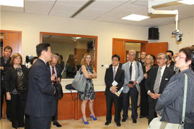 2014年5月15日,前来参加由北京大学人民医院牵头协办的第十八届中葡国际医学论坛的40位外宾在中国医师协会陪同下参观访问了北京大学人民医院临床能力培训中心。