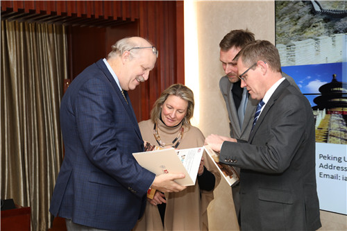 德国乌尔姆大学医学院院长Thomas Wirth教授、副院长Albert Ludolph教授、伦敦国王学院国际合作办公室主任Tania Lima教授、高级国际合作官员Angela Jin女士、曼彻斯特大学生物、医学与健康学院副院长Nigel Hooper教授、分子医学系Tao Wang教授、医学信息学系Niels Peek教授、记忆神经学Daniela Montaldi教授、密歇根大学医学院资深副院长Joseph C. Kolars教授、密歇根大学系医学院计算医学与生物信息系主任Brian D. Athey教授,在北京大学医学部国合处李晓佳副处长陪同下,来到北京大学人民医院。王天兵副院长,工会副主席、心内科刘健教授,国际合作办公室主任、风湿免疫科副主任穆荣教授,科研处副处长、肝病研究所所长助理饶慧瑛教授,创伤救治中心副主任、重症医学科朱凤雪教授,呼吸内科副主任韩芳教授,医学信息中心张东湖副主任,神经内科洪道俊教授等陪同出席。
