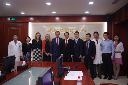 Ota Schütz博士对医院信息化管理创新成果给予了高度评价和赞赏。他表示对于能够访问北京大学人民医院感到荣幸。Ota Schütz博士在血管外科领域有着丰富的经验,特别是血管外科“非住院手术(One-day Surgery)”。在座谈中对人民医院治疗血管疾病的特色技术表示出极大的兴趣,希望能与人民医院血管外科建立更密切的联系。随后,双方还热烈讨论并交流了中捷两国医学教育体制等问题。捷克驻华使馆主管科技和医疗二级秘书Sandra Lang Linkensederova女士表示将在政府层面推动捷克医学院校和医疗机构与人民医院的合作与交流。王杉院长表示,医院将本着开放的态度,致力于与捷克开展医学交流、人员互访和科学研究等方面的合作。最后,来访外宾前往血管外科进行了参观交流。