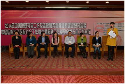 2014年11月13日,由国家卫生和计划生育委员会医政医管局、中国医院协会医院社会工作暨志愿服务工作委员会主办,北京大学人民医院承办的“2014中国医务社会工作及志愿服务制度体系建设研讨会暨中国医院协会医院社会工作暨志愿服务工作委员会第五届工作会议”在北京隆重召开。共有来自卫计委、民政部、北京大学、清华大学及各大医院的10名专家学者进行专题讲座,27名专家参与了专题讨论,吸引了全国18省市138家医院、高校、社工机构的182名人员参加此次大会。